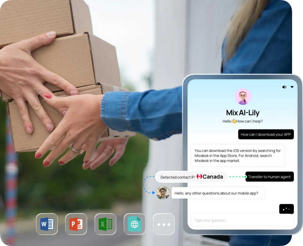 - 多模态领先: Mixdesk 率先实现了文本和图片的多模态识别与理解。无论是客户在 FB 上发送的产品图片询价,还是在 WhatsApp 上发送的物流单据截图,AI 都能瞬间识别并进入下一步专业处理流程。