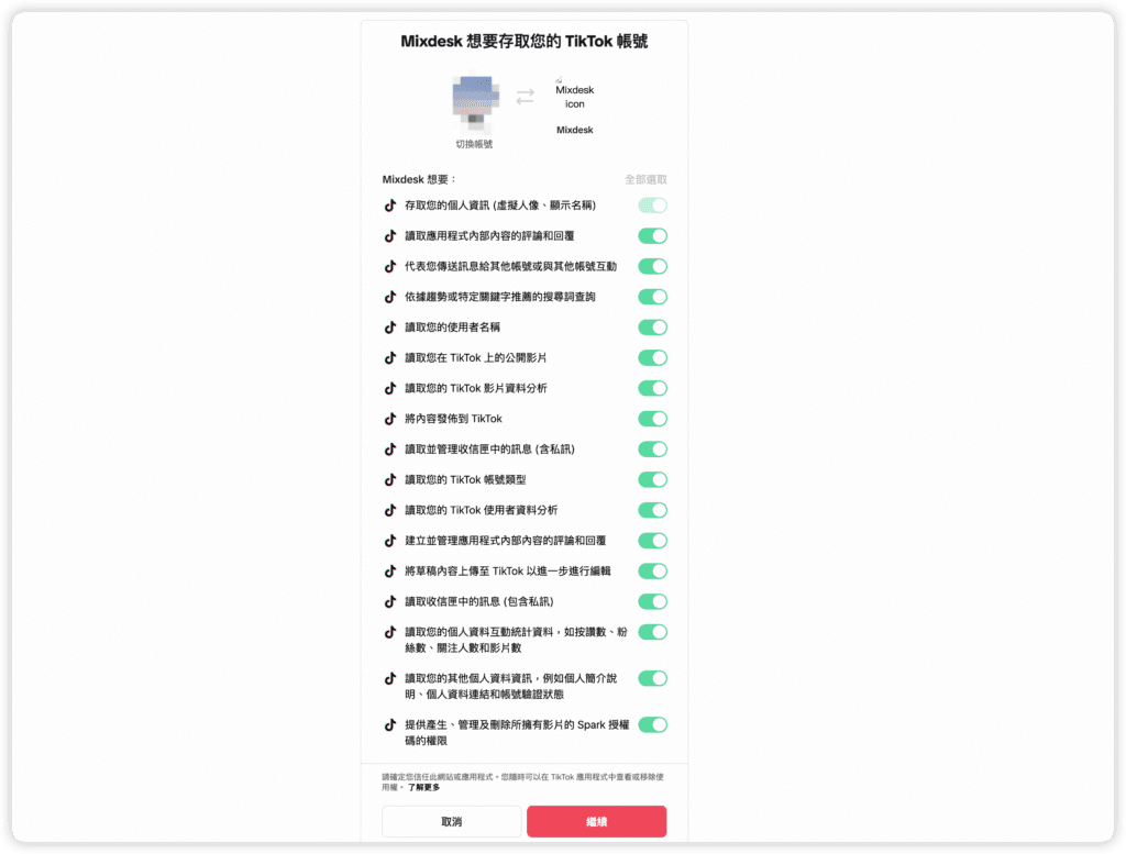 ⚠️TikTok Business接入页面可进行授权以及取消绑定的操作