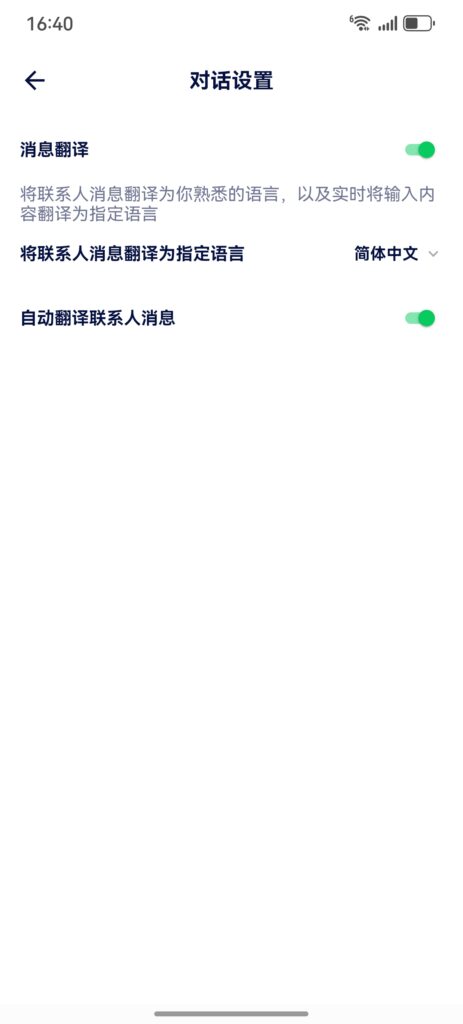 2. 自动翻译联系人消息&评论:开启后,将自动翻译为【指定语种】,否则每条消息均需要手动点翻译按钮。