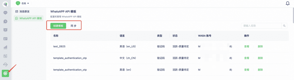 如果你对接了WhatsApp business API(即WhatsApp商业账号),就可以在这里同步配置和管理 WhatsAPP API 模板,以进行后续的模板群发。