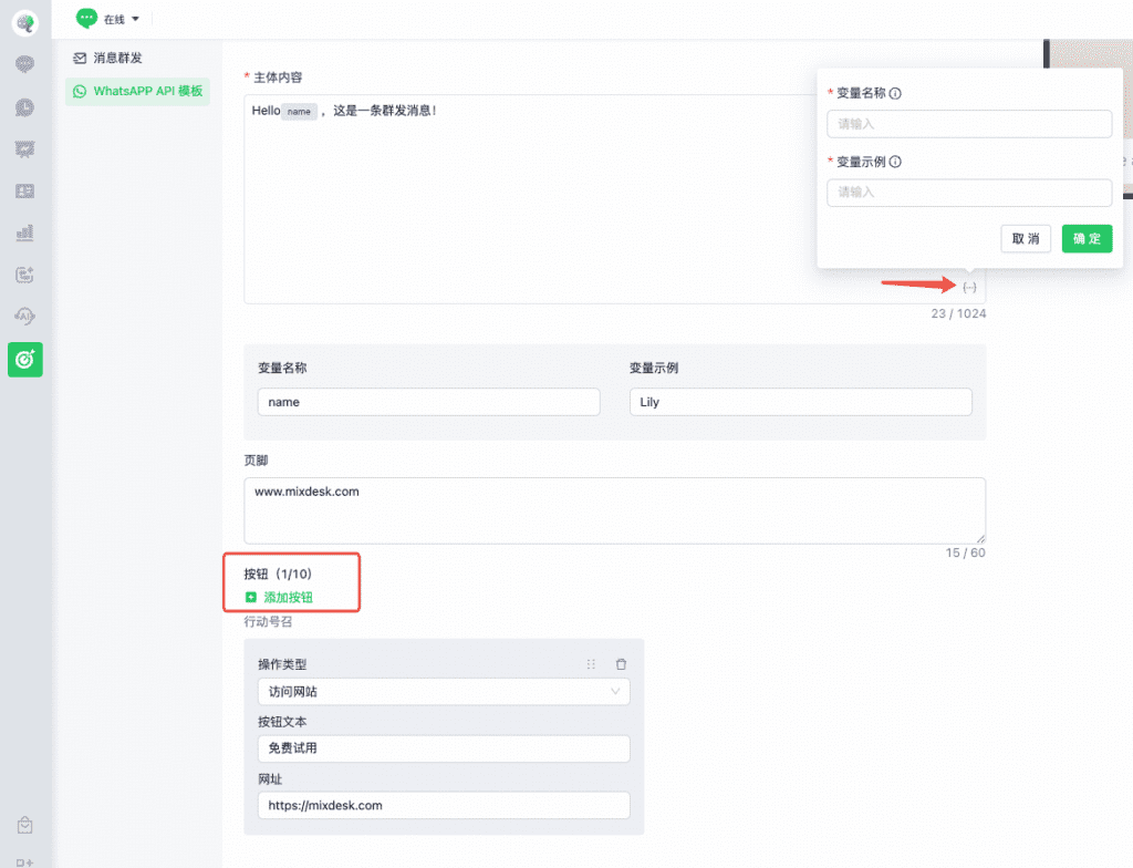 ⑦ 主体内容:群发的完整内容,支持填充变量。